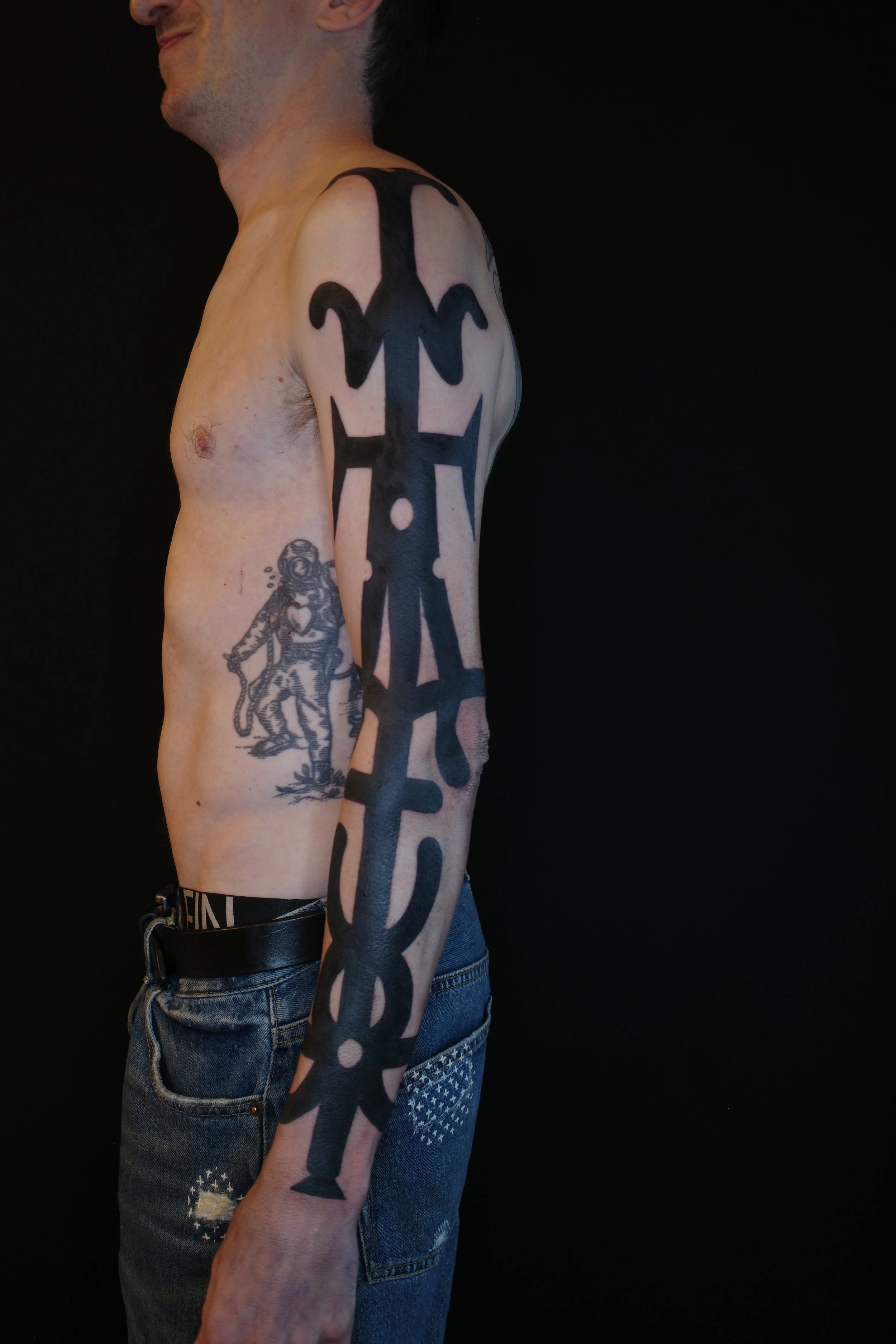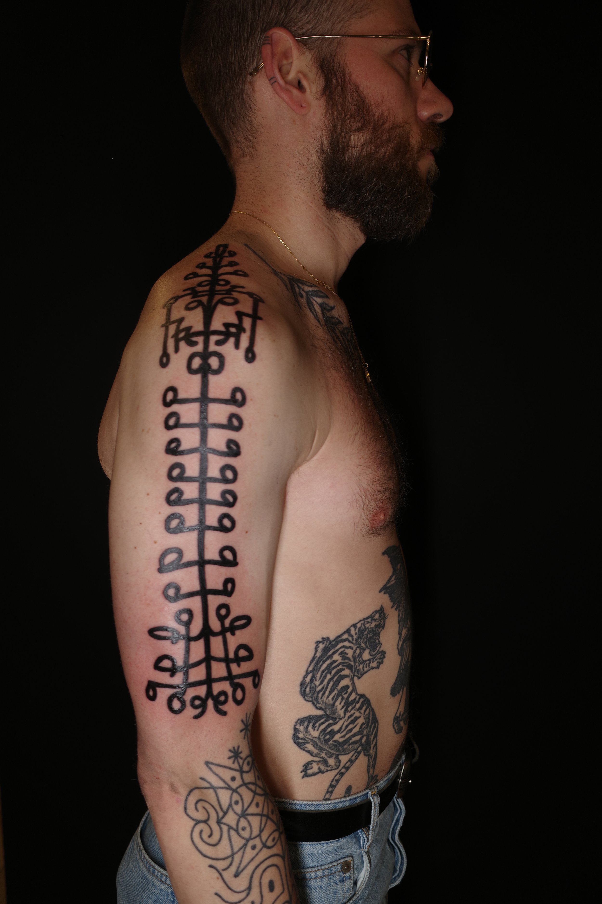 Ant the Elder’s tattoo work is multi-faceted but always comes from a place of service. Ant the Elder’s interest lies in the creation of tattoos that are fit for the body and the mind of the wearer, within the realm of the aesthetic language that their 15+ years of experience helped develop. Their expertise is rooted in sigil crafting, black work, ornamental, (art) history references, print making techniques emulations (woodcut, etching, engraving etc.), architecture and naturalist illustrations to name a few.